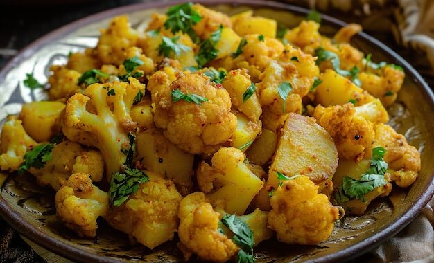 - Once cooked, garnish with fresh cilantro and serve hot. The vibrant green of the cilantro makes the Aloo Gobi even more appealing.